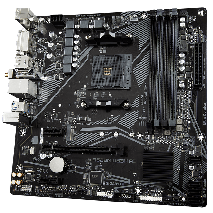 GIGABYTE A520M DS3H AC Mainboard, Sockel AM4, AMD A520, Micro-ATX, DDR4