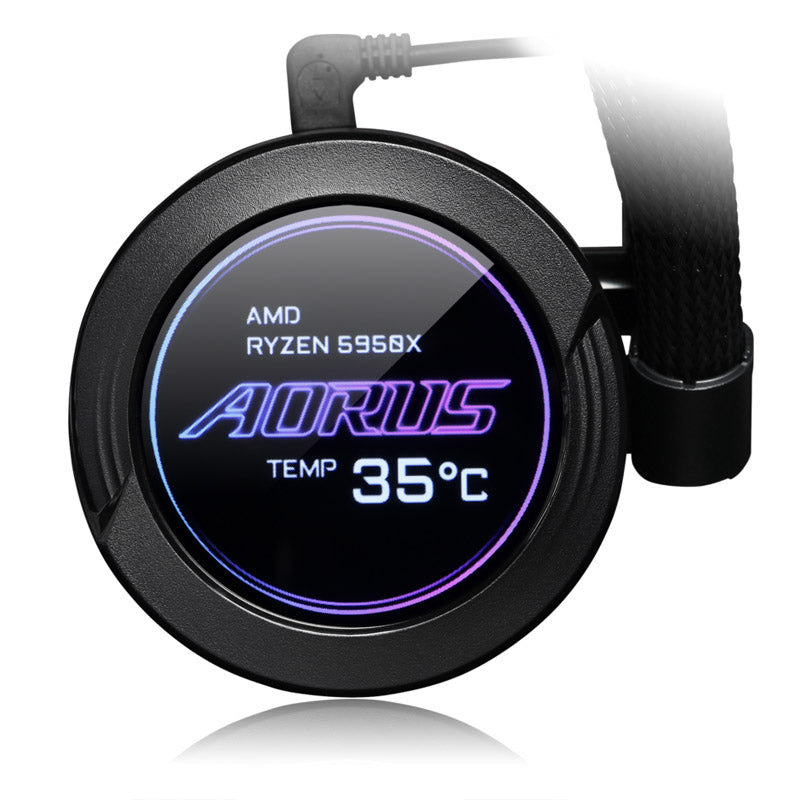 Die GIGABYTE AORUS Waterforce X beeindruckt mit ihren zwei 140-mm-ARGB-Lüftern, die nicht nur für optimale Luftzirkulation sorgen, sondern auch mit ihren atemberaubenden RGB-Effekten einen visuellen Genuss bieten. Das integrierte LCD-Display zeigt Ihnen jederzeit wichtige Statusinformationen, sodass Sie die Kontrolle über die Temperaturen Ihrer Hardware behalten.