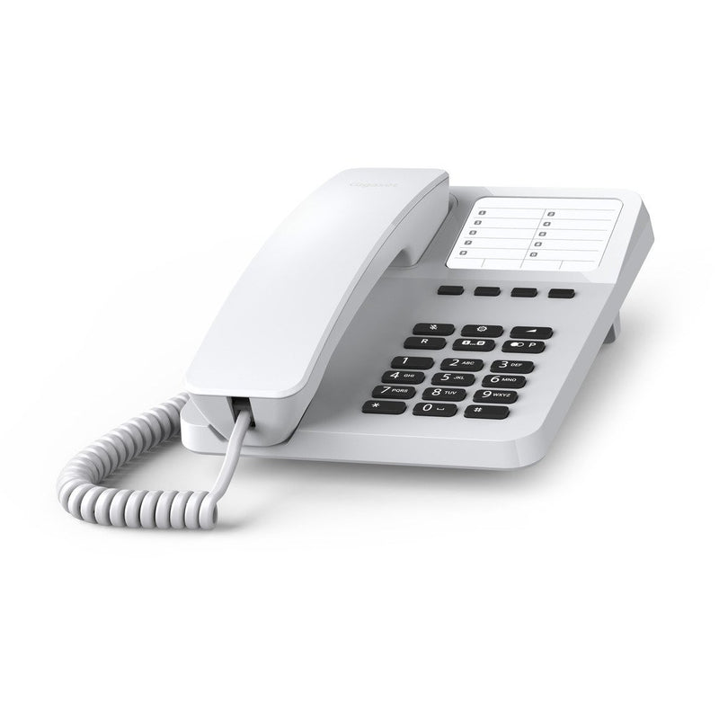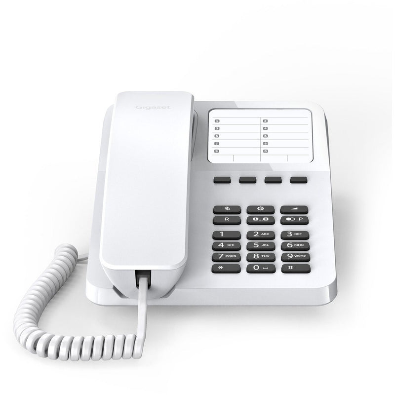 Gigaset DESK 400. Typ: Analoges Telefon. Hörertyp: Kabelgebundenes Mobilteil. Telefonbuch Kapazität: 10 Eintragungen. Produktfarbe: Weiß. Anzahl enthaltener Handsets: 1