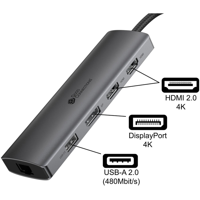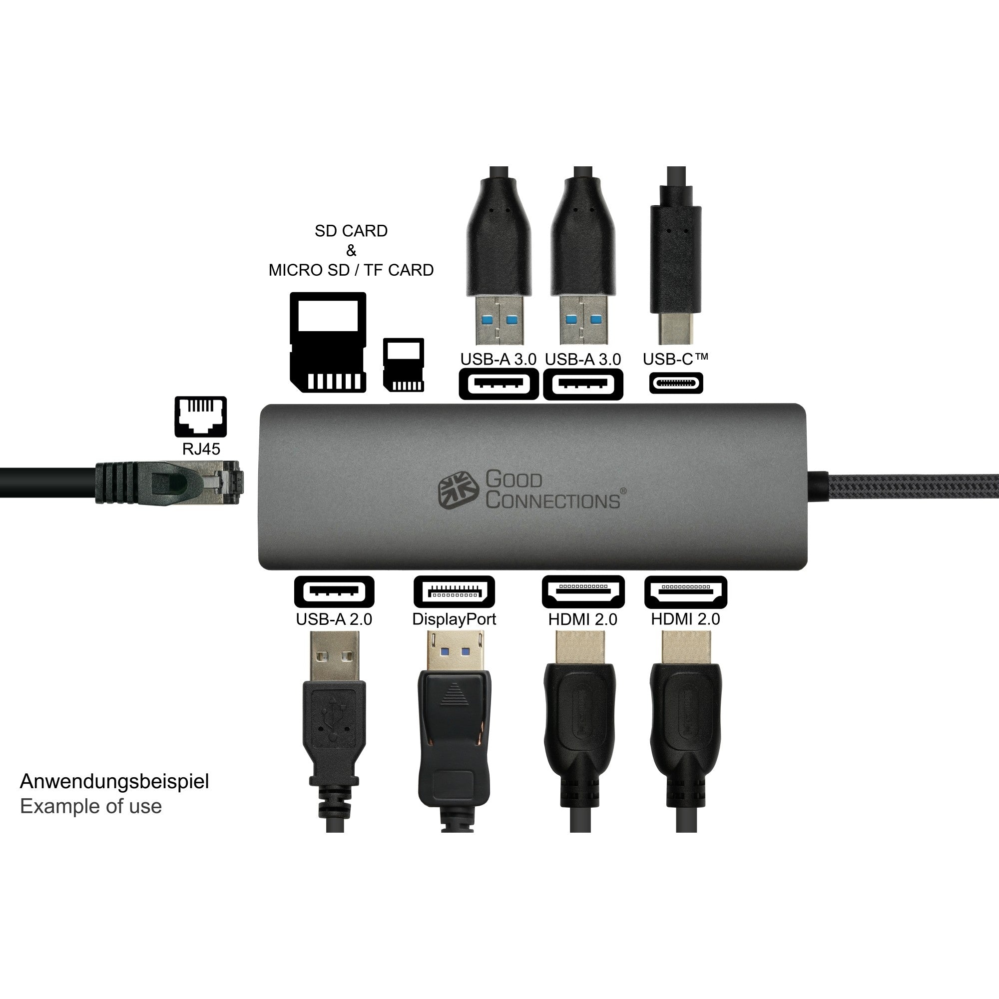 GoodConnections HUB-C001A USB-C HUB 10-Port 2xHDMI| 1xDP| 1xUSB-C| 2xUSB 3.0| 1xUSB 2.0| 1xRJ45| 1xKartenleser Anthrazit