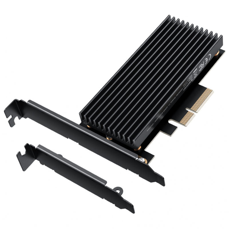 M.2 NVMe PCIe-4.0-Karte, zur Montage von M.2 SSDs in einem PCIe-Slot, integrierter Kühlkörper, bis zu 64 Gbit/s, inklusive Low-Profile Slotblende und Wärmeleitpads
