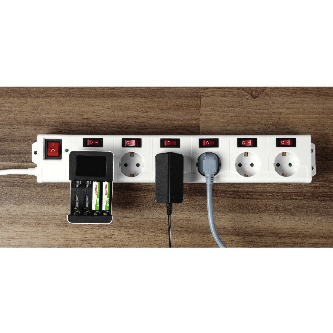 Hama 137239. Kabellänge: 1.4 m. Unterstützte Positionierung: Drinnen. Gehäusematerial: Synthetik. Anzahl der AC-Ausgänge: 6 AC-Ausgänge. AC Eingangsspannung: 230 V. Stromstärke (maximal): 4500 A. Kapazität: 3500 W. Breite: 455 mm. Tiefe: 75 mm. Höhe: 50 mm. Kabelfarbe: Weiß