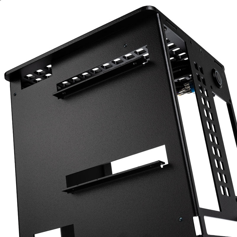 Kompaktes Gaming-Gehäuse, aus hochwertigem Aluminium in Mattschwarz, für Mini-ITX-Mainboards (Intel & AMD) & SFX-PSUs, Dual-Slot-GPU bis 17 cm, 2x 2,5-Zoll-Drives