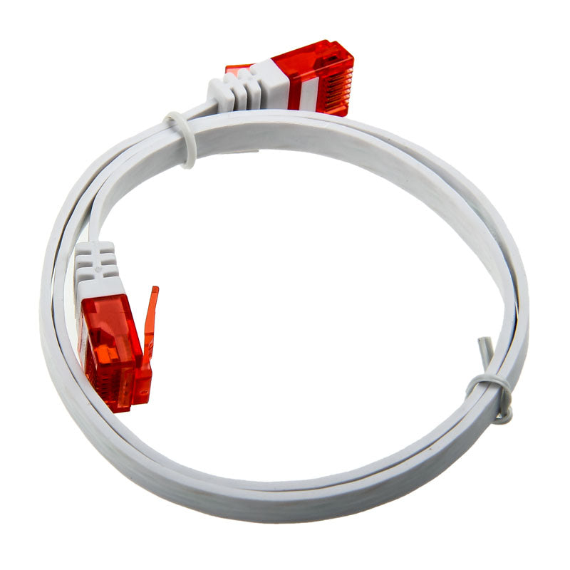 Patchkabel mit flachen RJ45-Steckern zur Verbindung von PCs im Netzwerk über einen Hub/Switch - 0,5 m, weiß