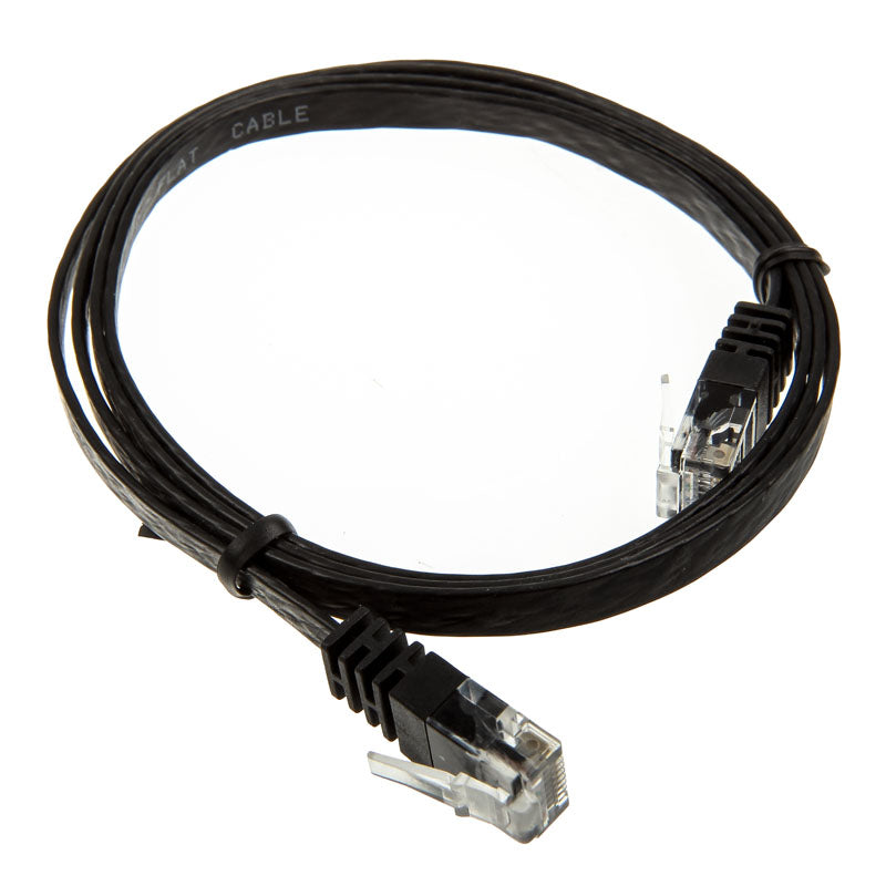 Patchkabel mit flachen RJ45-Steckern zur Verbindung von PCs im Netzwerk über einen Hub/Switch - 1 m, schwarz