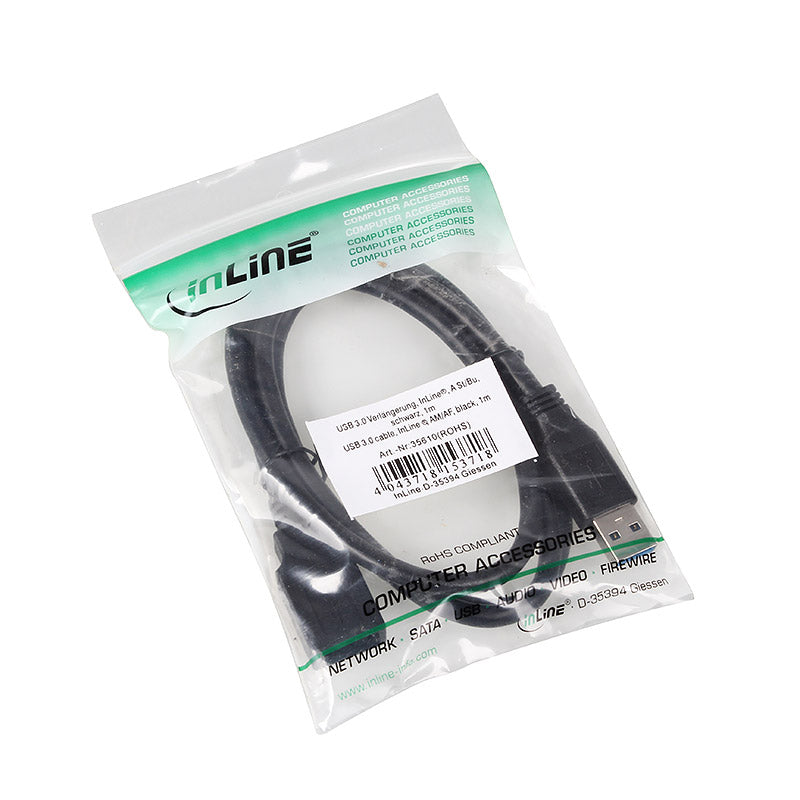 1 m langes USB 3.0 Verlängerungskabel von InLine in Schwarz