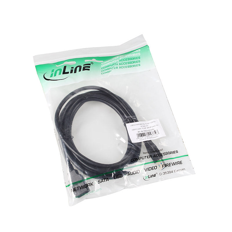 3 m langes USB 3.0 Verlängerungskabel von InLine in Schwarz