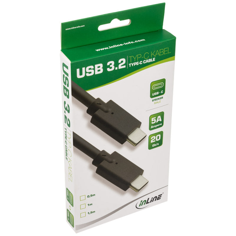 InLine USB 3.2 Gen.2 Kabel, USB Typ-C Stecker/Stecker, schwarz - 0,5m