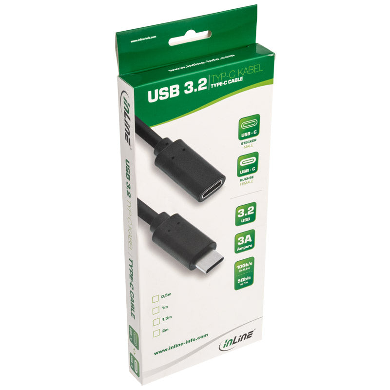 InLine USB 3.2 Gen 2 Verlängerungskabel, USB Typ C, schwarz - 2m