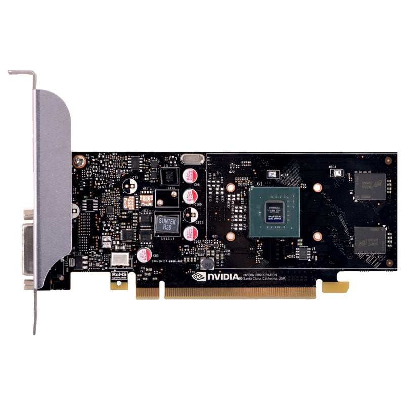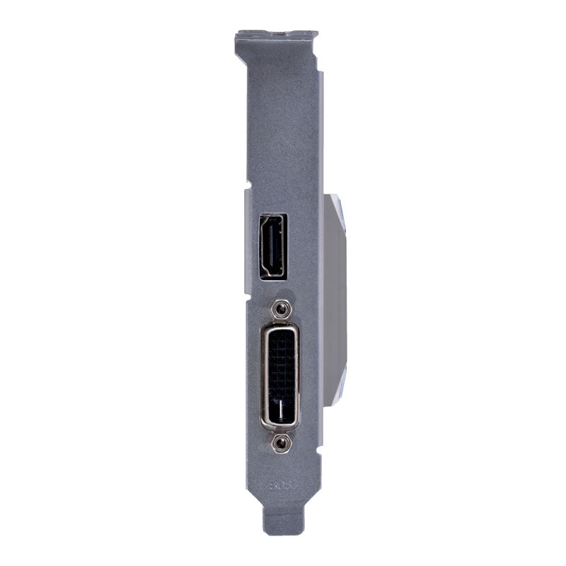 Kompakte "Pascal"-Entry-Level-Grafikkarte, 1.227/1.468 MHz Base/Boost, 6.000 MHz Speichertakt (effektiv), 1× HDMI / 1×DVI-D, passives Kühlerdesign & 2 GB GDDR5 VRAM