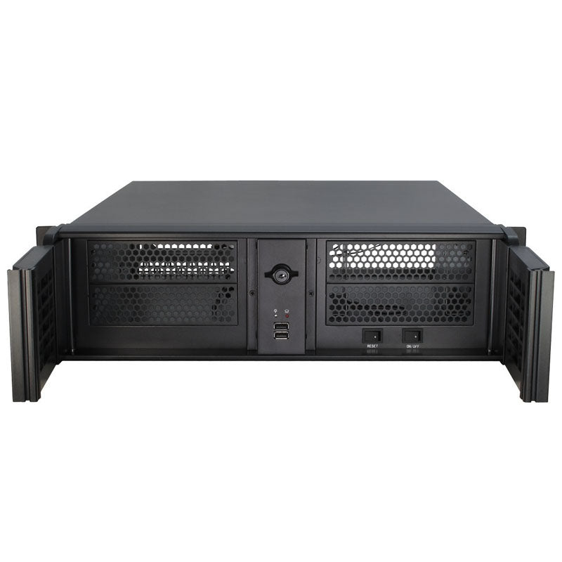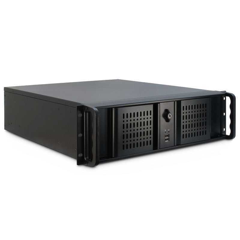 19-Zoll-3U-Server-Gehäuse von Inter-Tech, zwei vorinstallierte Lüfter, für Motherboards bis ATX, abschließbare Frontklappe mit Staubfiltereinsatz, zwei USB-2.0-Ports, Einbaumöglichkeit für redundantes Netzteil, Schwarz