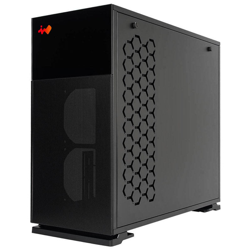 Edler Midi-Tower von InWin, Front mit Mesh und Hartglas-Seitenfenster, ein vorinstallierter 120-mm-ARGB-PWM-Lüfter, I/O-Panel mit USB 3.2 Typ C