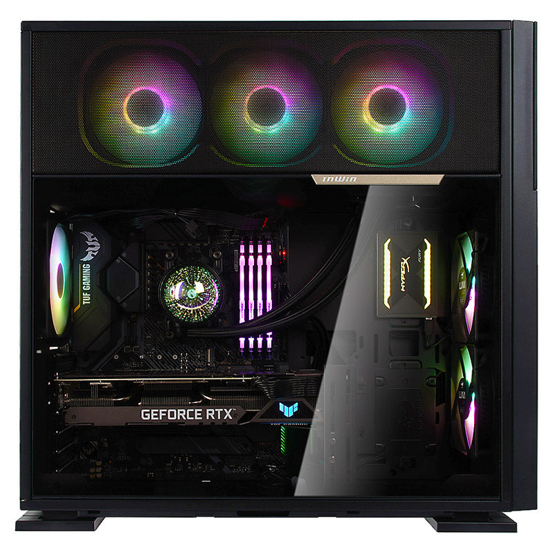 Edler Midi-Tower von InWin, ausgefallenes Kühlkonzept, Netzteilkammer an der Oberseite mit Mesh, dahinter Platz für vetikal montierte Radiatoren, halbhohes Hartglas-Seitenfenster, ein vorinstallierter 120-mm-ARGB-PWM-Lüfter, I/O-Panel mit USB 3.2 Typ C
