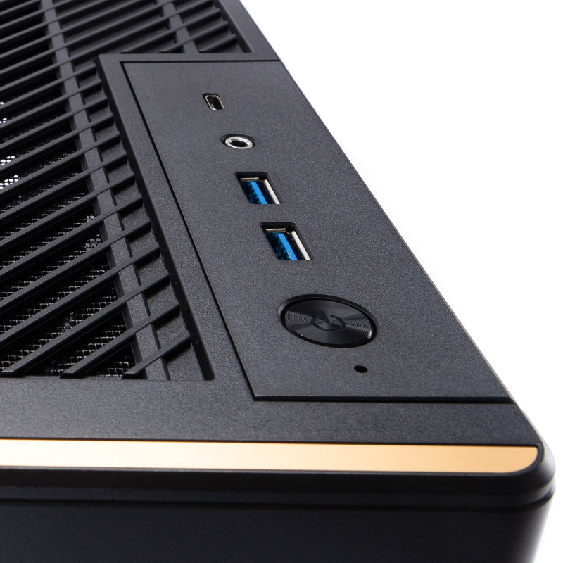 Schlichter Midi-Tower, ein Mercury AM120S Lüfter enthalten, insgesamt fünf Lüfter möglich, GPUs bis 340 mm / CPU bis 162 mm Höhe, bis zu vier Laufwerke möglich, Radiator bis 240 mm, 1x USB-C / 2x USB-A