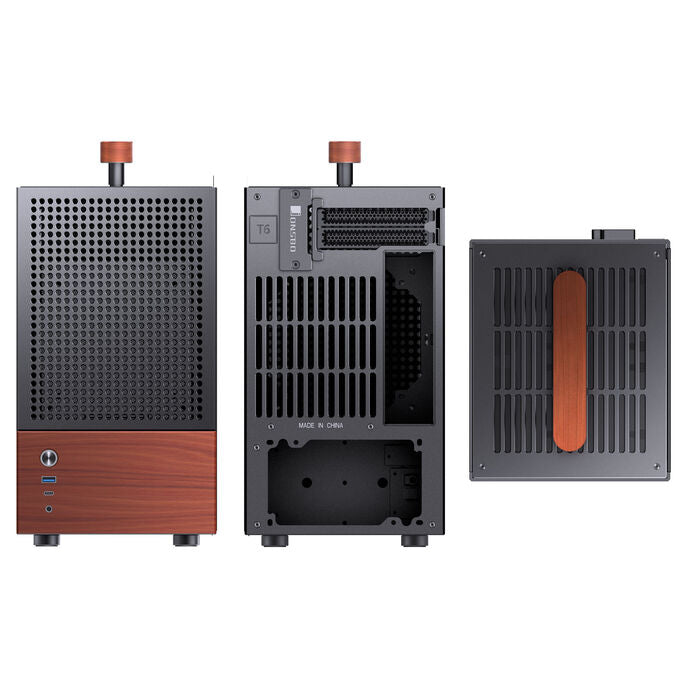Jonsbo T6 PC Gehäuse, Mini-Tower, Mini-ITX, Tempered Glass, Holz - schwarz