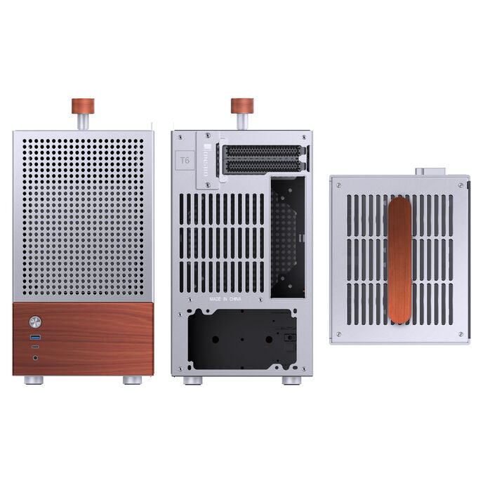 Jonsbo T6 PC Gehäuse, Mini-Tower, Mini-ITX, Tempered Glass, Holz - silber