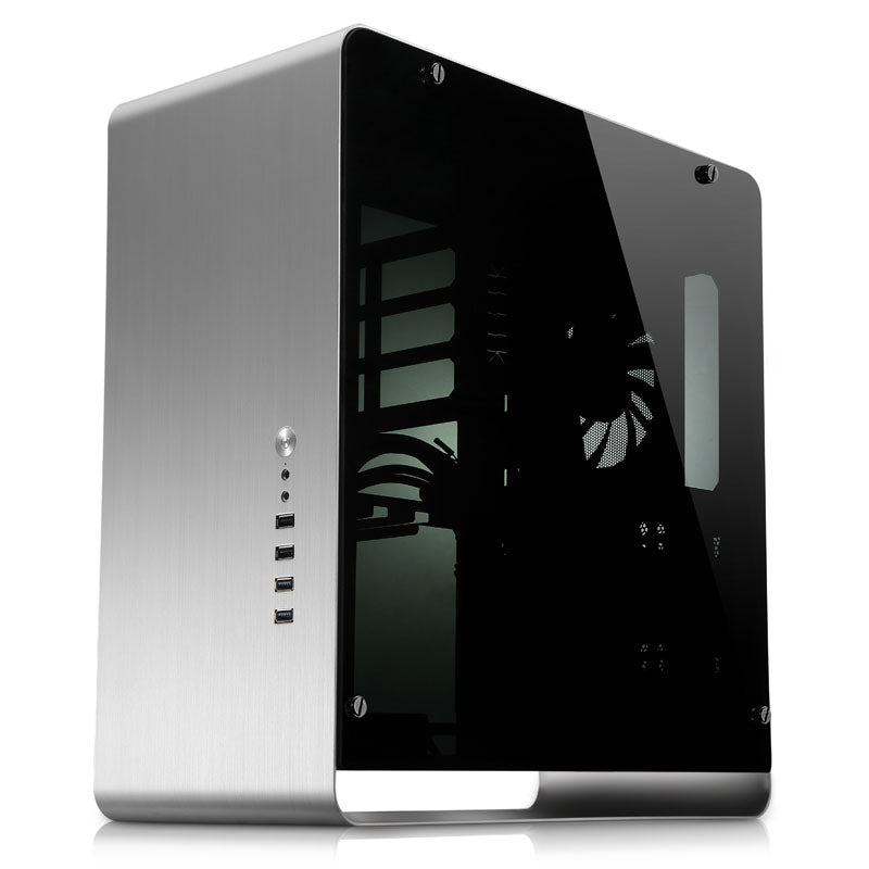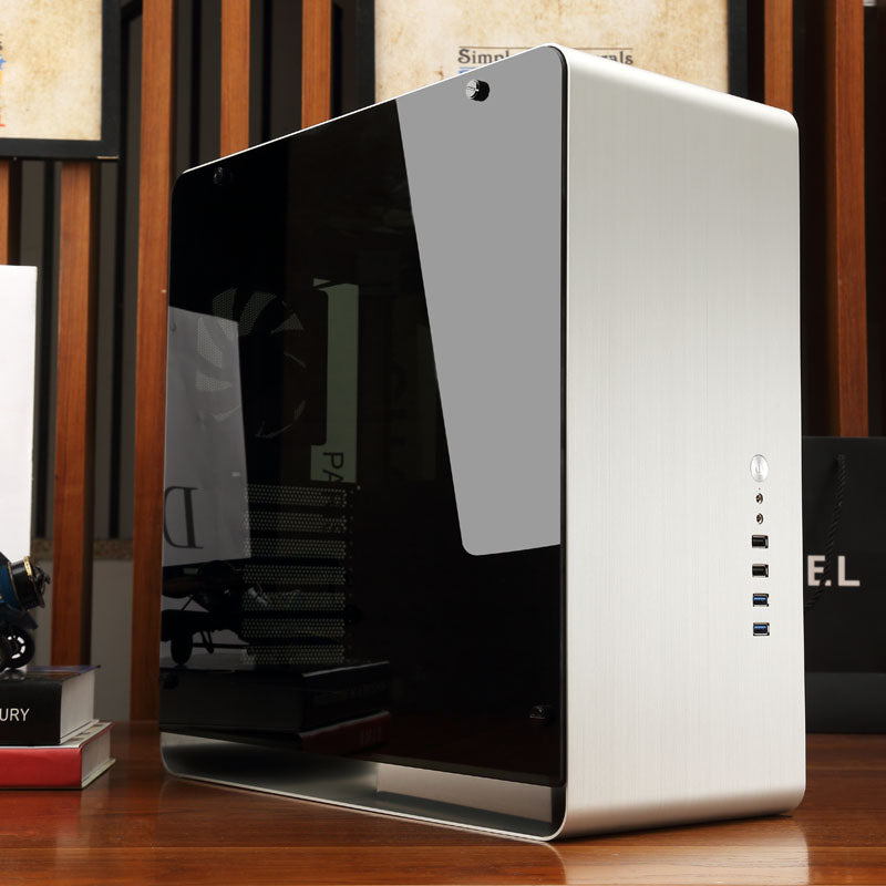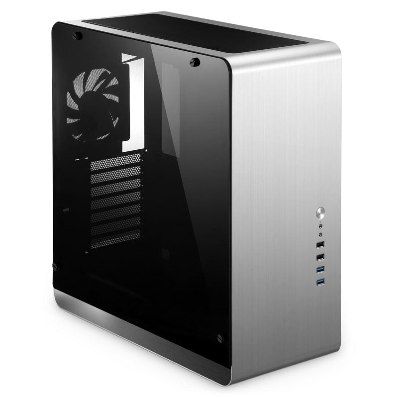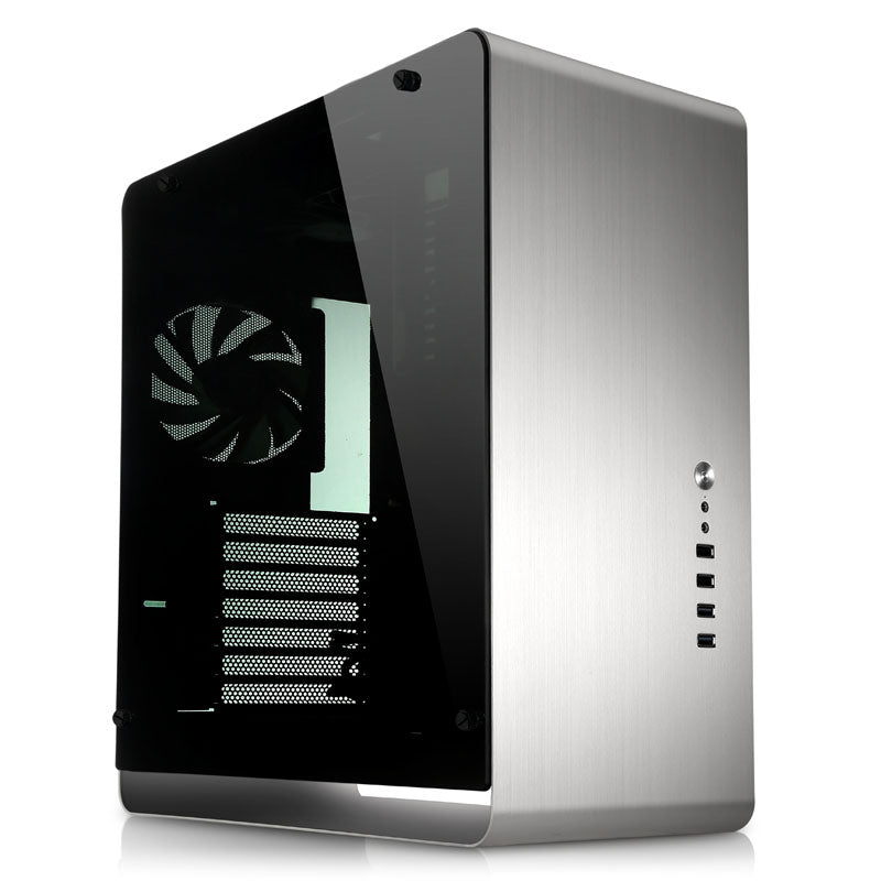 Edler Midi-Tower von Jonsbo, dezentes Design aus Aluminium und Stahl, Seitenteil aus Tempered Glass, für Mainboards bis ATX, unterstützt große ATX-Netzteile, Grafikkarten bis 310 mm, 2x 3,5- und 2x 2,5-Zoll-Datenträger, Silber