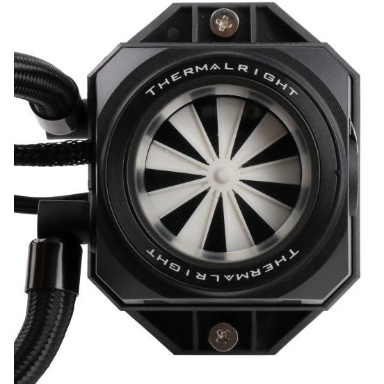 Thermalright Turbo Right 360C. Typ: All-in-One-Flüssigkeitskühler. Lüfterdurchmesser: 12 cm. Rotationsgeschwindigkeit (min.): 600 RPM. Rotationsgeschwindigkeit (max.): 1800 RPM. Breite: 94.8 mm. Tiefe: 70 mm. Höhe: 77 mm. Produktfarbe: Schwarz