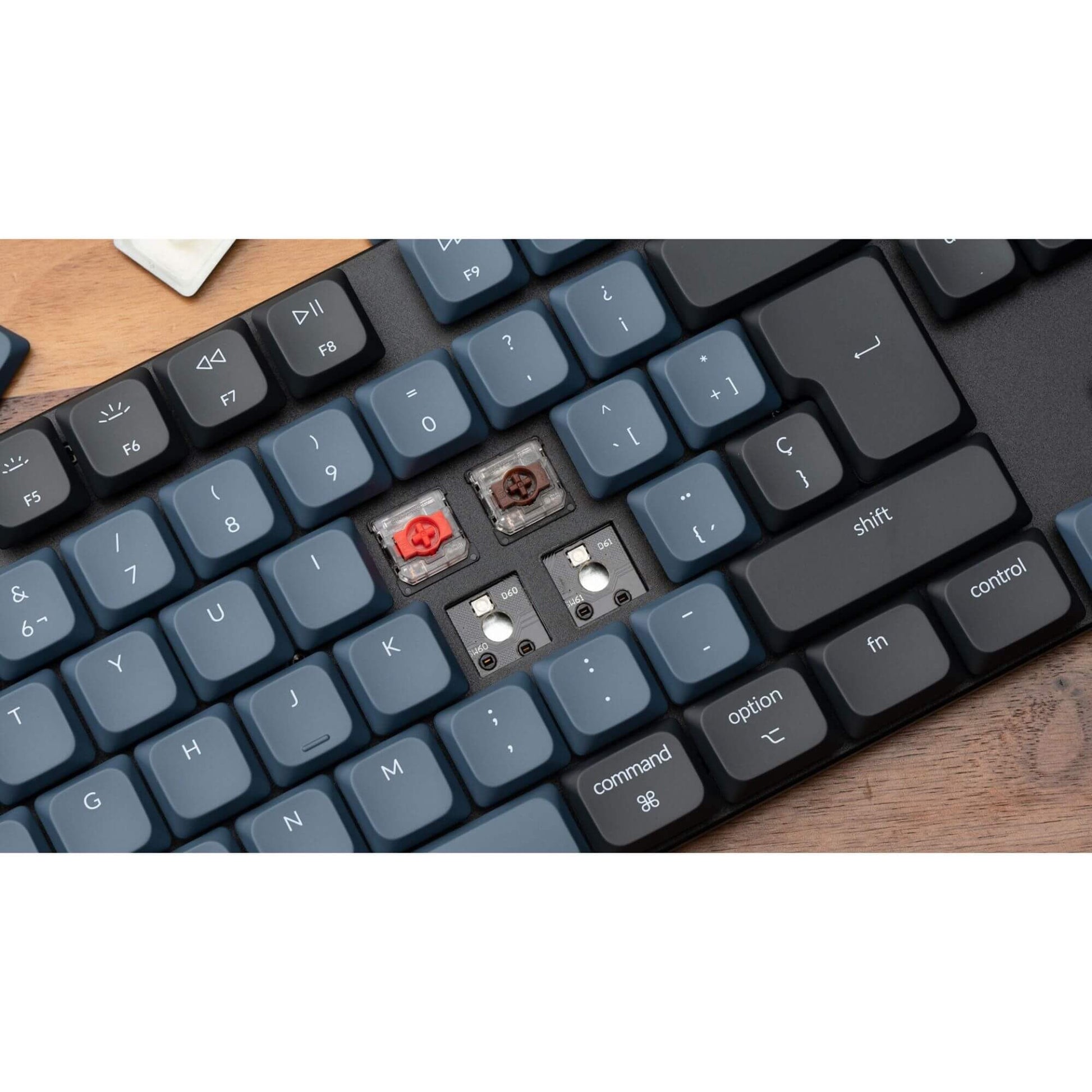 Die Keychron K1 Pro ist ebenfalls mit speziellen ABS-Backlight-Keycaps ausgestattet, die nicht nur ein angenehmes Tipperlebnis bieten, sondern auch einen hervorragenden Shine-Through-Effekt der Hintergrundbeleuchtung ermöglichen. Beachten Sie bitte, dass die K1 Pro derzeit ausschließlich mit mechanischen Low-Profile-Schaltern von Gateron kompatibel ist, da QMK und VIA keine optischen Low-Profile-Schalter unterstützen.