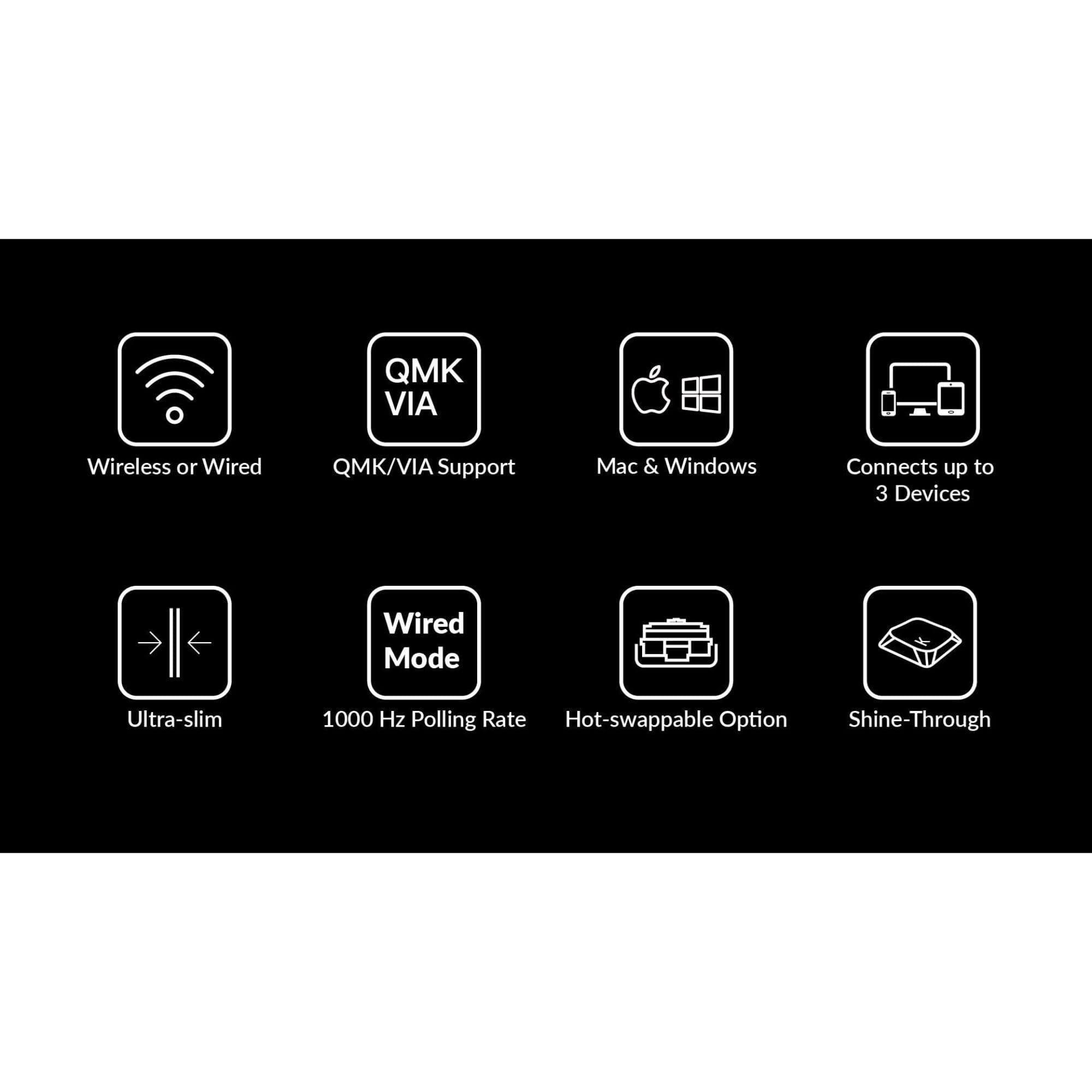 Die K13 Pro nutzt vor-geschmierte Gateron Low-Profile Switches, die eine außergewöhnliche Zuverlässigkeit und ein angenehmes Tipperlebnis gewährleisten. Jeder Tastenanschlag ist präzise und reibungslos, was das Schreiben zu einer Freude macht. Zusätzlich zur Kompatibilität mit Mac bietet die K13 Pro auch eine nahtlose Nutzung unter Windows. Die mitgelieferten Tastenkappen für macOS und Windows sowie Zusatz-Tasten wie ESC und Enter erlauben es Ihnen, mühelos zwischen den Betriebssystemen zu wechseln. Konfigurieren Sie Ihre bevorzugten Tastenbelegungen ganz einfach mit der VIA-Software, die mit macOS, Windows und Linux kompatibel ist.