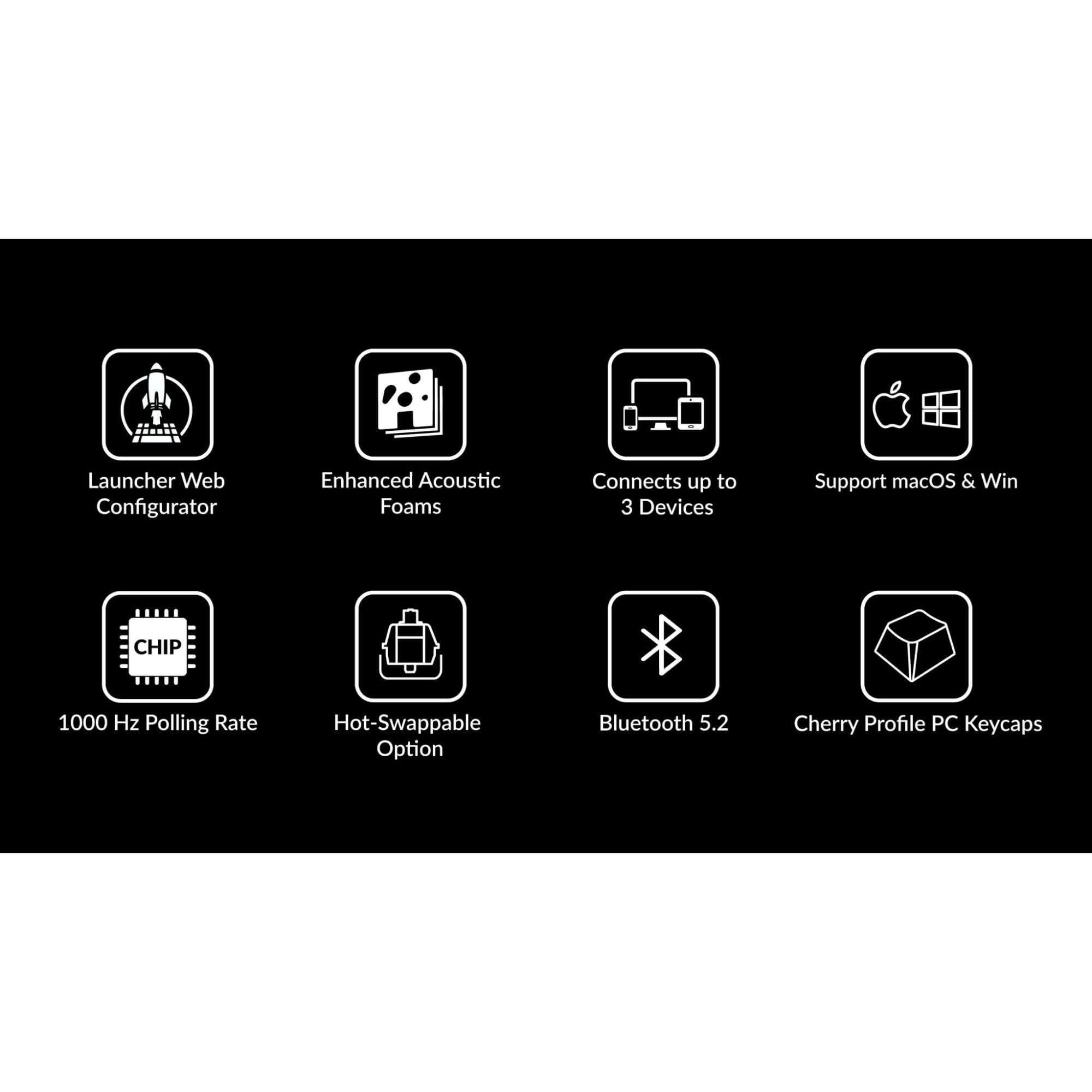 Dank der offenen QMK-Firmware haben Sie die Freiheit, jede Taste nach Ihren Wünschen neu zu belegen. Ob Makros, verschiedene Layers oder spezifische Layouts – mit dem Keychron Launcher, direkt im Browser, können Sie alles bequem und ohne zusätzliche Software einstellen. Die K2 Version 3 unterstützt sowohl kabellose Verbindung über Bluetooth 5.2 als auch eine kabelgebundene Verbindung per USB-C, wodurch sie mit macOS, Windows und Linux kompatibel ist. Der Wechsel zwischen bis zu drei Geräten erfolgt schnell und intuitiv.