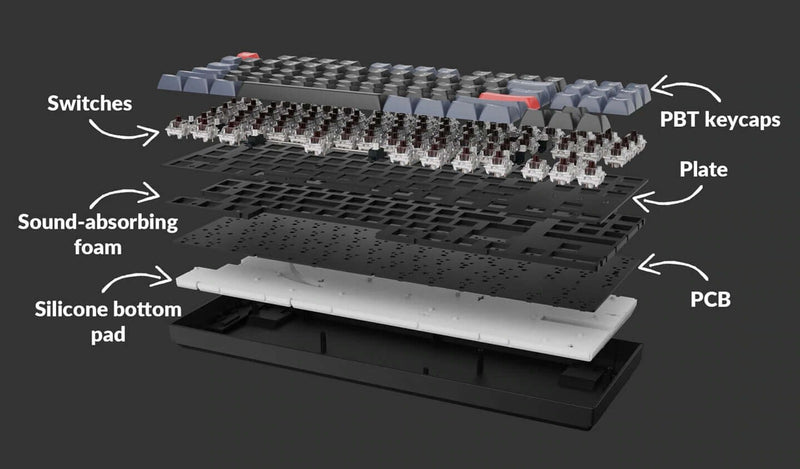 Das Tipperlebnis der K8 Pro wurde von Grund auf neu gestaltet. Der zusätzliche geräuschabsorbierende Schaumstoff und die dicke Silikondämpfung an der Unterseite sorgen für ein reaktionsschnelles Feedback sowie ein angenehmes Schreibgeräusch. Dieses durchdachte Design erhöht nicht nur den Komfort beim Tippen, sondern trägt auch zur Stabilität der Tastatur bei.