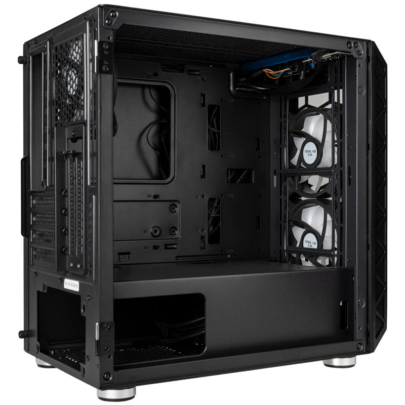 Stylisches Case für Mainboards bis Micro-ATX, Vorderseite und Seitentür aus Tempered-Glass, 3x 120-mm-PWM-ARGB-Lüfter vorinstalliert, inklusive Lüfter- und RGB-Controller, Radiatoren bis 280 mm, 2x 3,5"- und 2x 2,5"-Slots, I/O-Panel mit 1x USB 3.2 Gen 2 Typ C / 2x USB 3.0