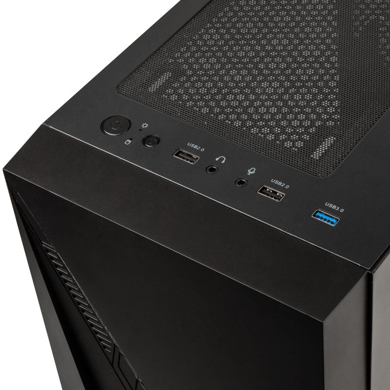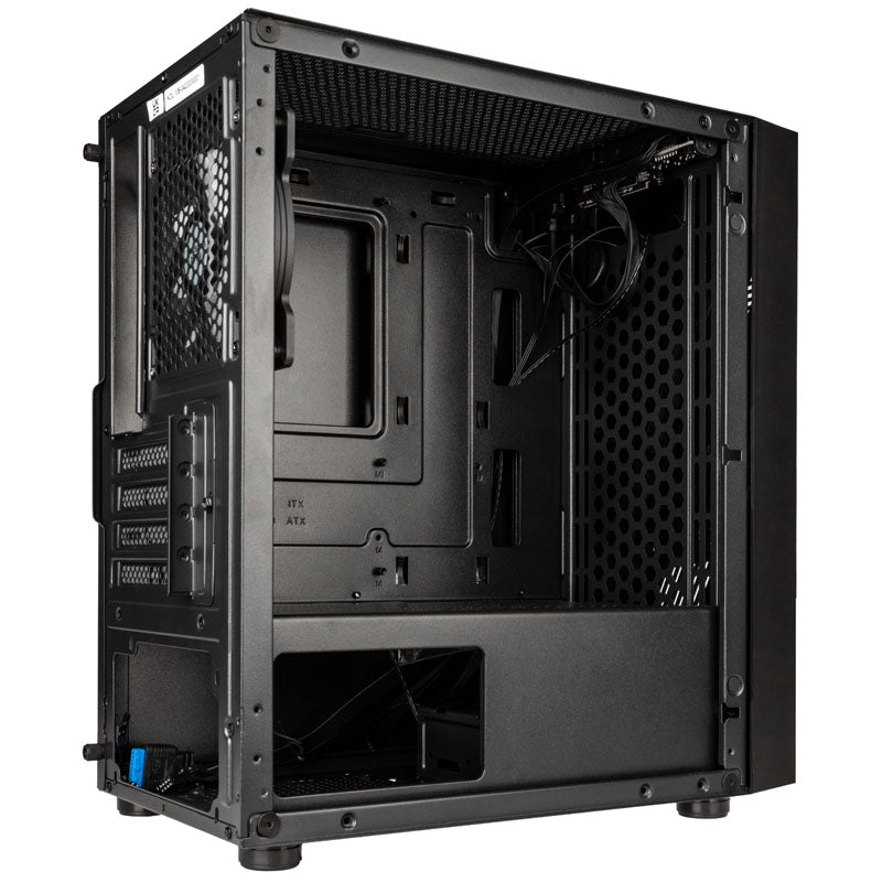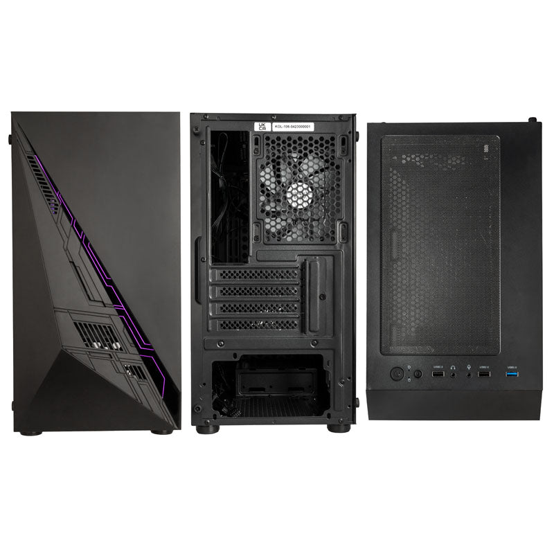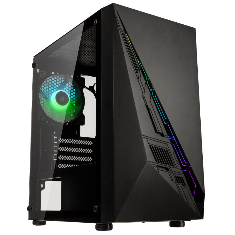 Elegantes Micro-ATX-Gehäuse, auffällige Front mit ARGB-LED-Strip, Seitenteil aus Temperglas, 1x 120-mm-ARGB-Lüfter vorinstalliert, GPU-Länge von bis 300 mm
