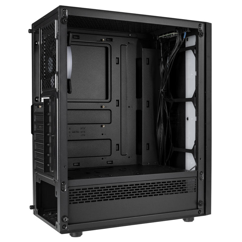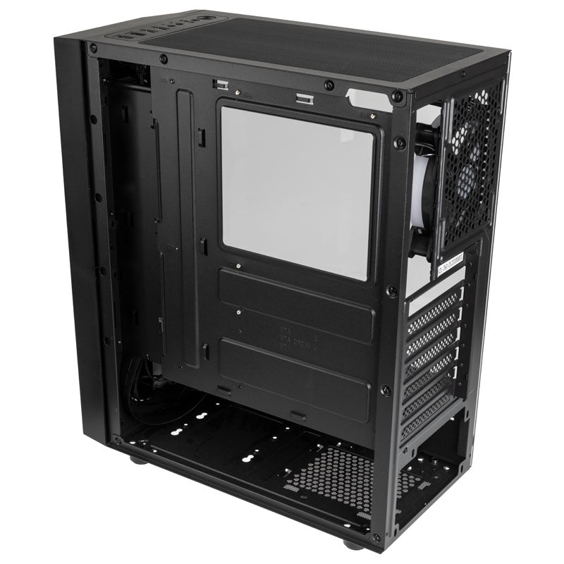 Stylisches Case für Mainboards bis ATX, Seitenteil aus Tempered Glass, Vorderseite mit Mesh Cut-Out und digital adressierbarem RGB-LED-Strip, 1x 120-mm-ARGB-Lüfter vorinstalliert, 2x 2,5/3,5"- und 1x 2,5"-Slots, I/O-Panel mit 1x USB 3.0 & 2x USB 2.0 & RGB-Steuerung