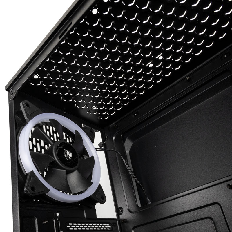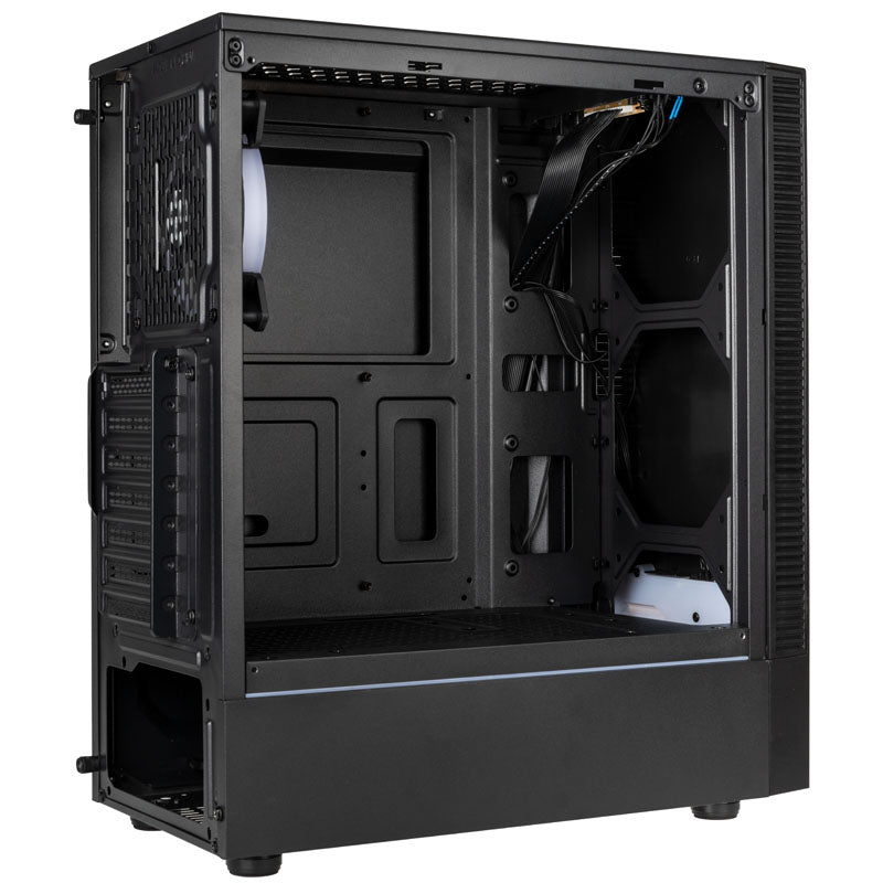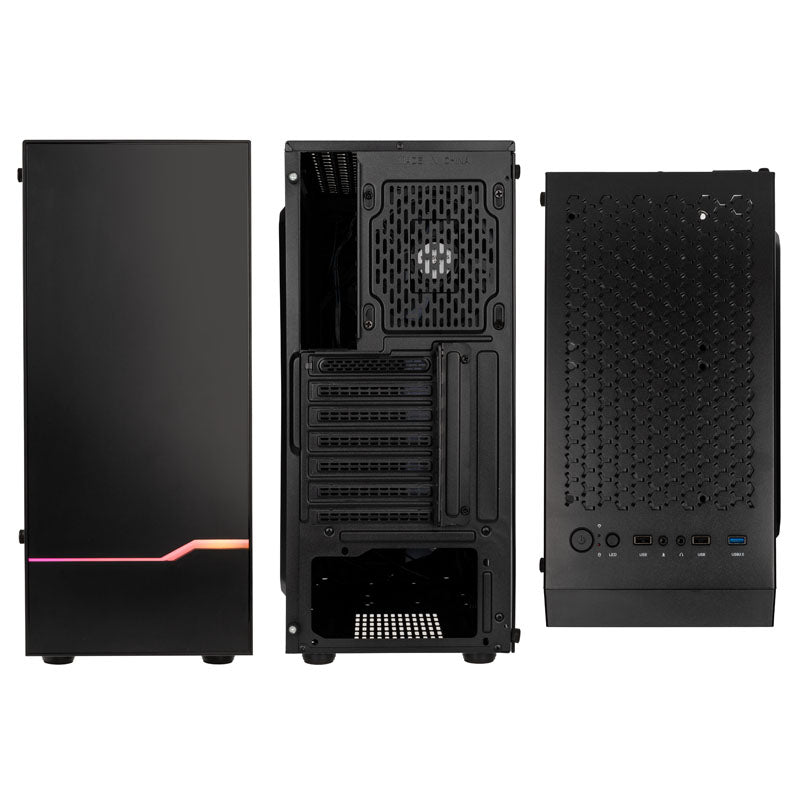 Stylischer Midi-Tower Case für Mainboards bis ATX, Seitenteil aus Tempered Glass, Vorderseite und Netzteilabdeckung mit digital adressierbarem RGB-LED-Strip, 1x 120-mm-ARGB-Lüfter vorinstalliert, 2x 2,5/3,5"- und 4x 2,5"-Slots