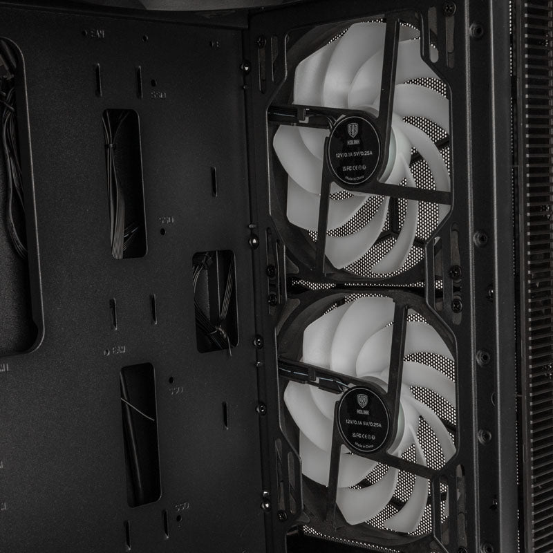 Midi-Tower PC-Gehäuse, Seitenteil aus Tempered Glass, Front aus Mesh, 5x Kolink Umbra ARGB Lüfter, GPUs bis 330 mm, Netzteilabdeckung, für ATX-Mainboards