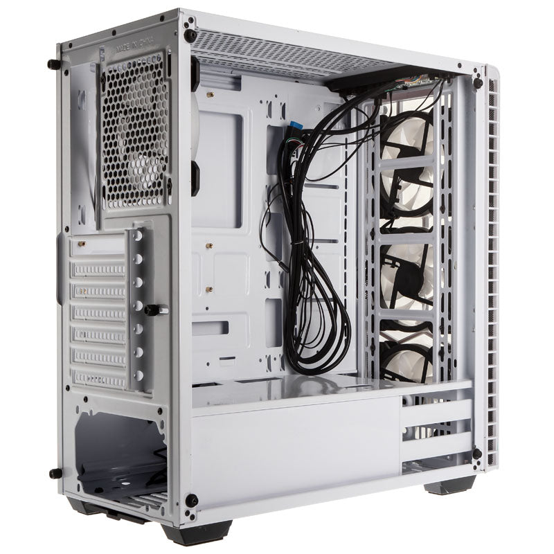 Stylischer Midi-Tower für Mainboards bis E-ATX, Seitenteil und Front aus Tempered Glass, 4x 120mm RGB-Lüfter vorinstalliert, Radiatoren bis 280 mm, 2x 3,5 & 4x 2,5"-Slots, entnehmbare Staubfilter