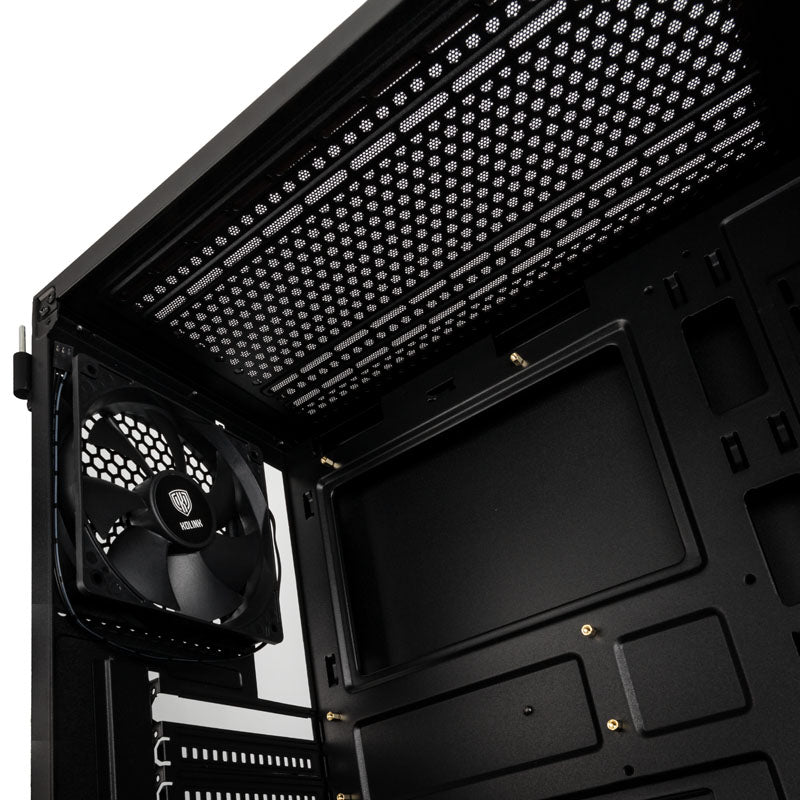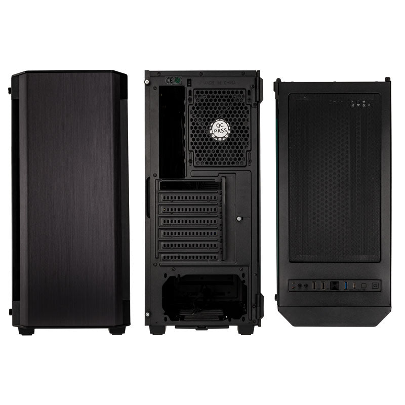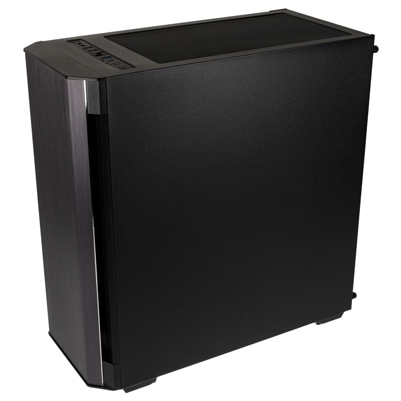 Schicker Midi-Tower von Kolink mit integriertem RGB-LED-Strip, Vorderseite aus gebürstetem Aluminium, für Mainboards bis E-ATX-Format, vorinstallierter 120-mm-Fan, inklusive RGB-Controller und Steuerung am I/O-Panel, 2x 3,5-/4x 2,5-Slots, 1x USB 3.2 Gen 2 Typ C / 1x USB 3.0 / 2x USB 2.0 am I/O-Panel