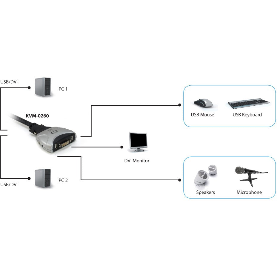 KVM Switch 2x DVI/USB KVM-0260 V2 mit Audio