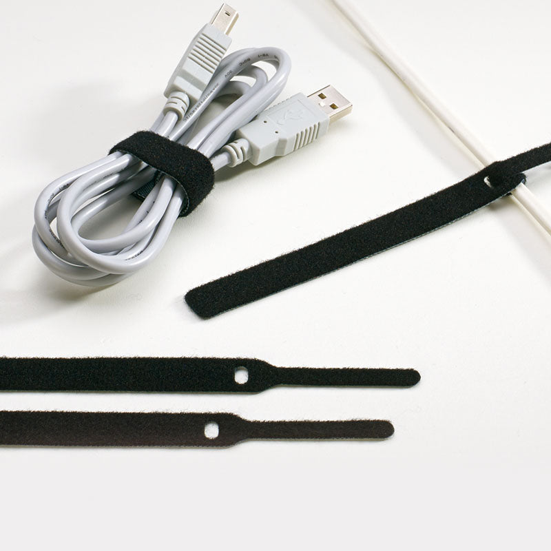Schafft Ordnung: Set von Label the Cable mit 10 schwarzen Basic-Kabelklettbindern - im Umfang variabel, wärme- und lichtbeständig