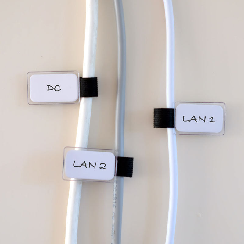 Schafft Ordnung: Label the Cable Set mit 10 schwarzen Mini-Kabelklettbindern sowie Labels