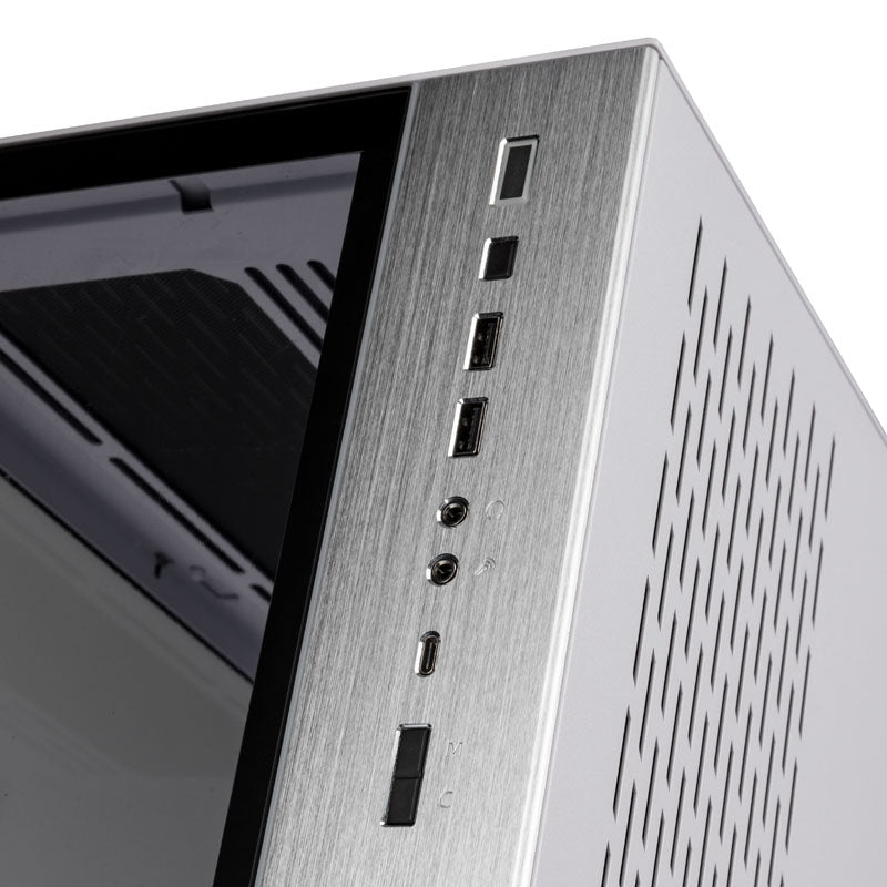 Riesiger Dual-Chamber Big-Tower, Seitenteil und Front aus Tempered Glass, Grafikkarten bis 446 mm, 3x 360-mm-Radiatoren gleichzeitig möglich, Deckel und Seitenwand aus Aluminium, bis zu 10x 120-mm-Lüfter, 1x USB Typ C und 4x USB 3.0 im Frontpanel