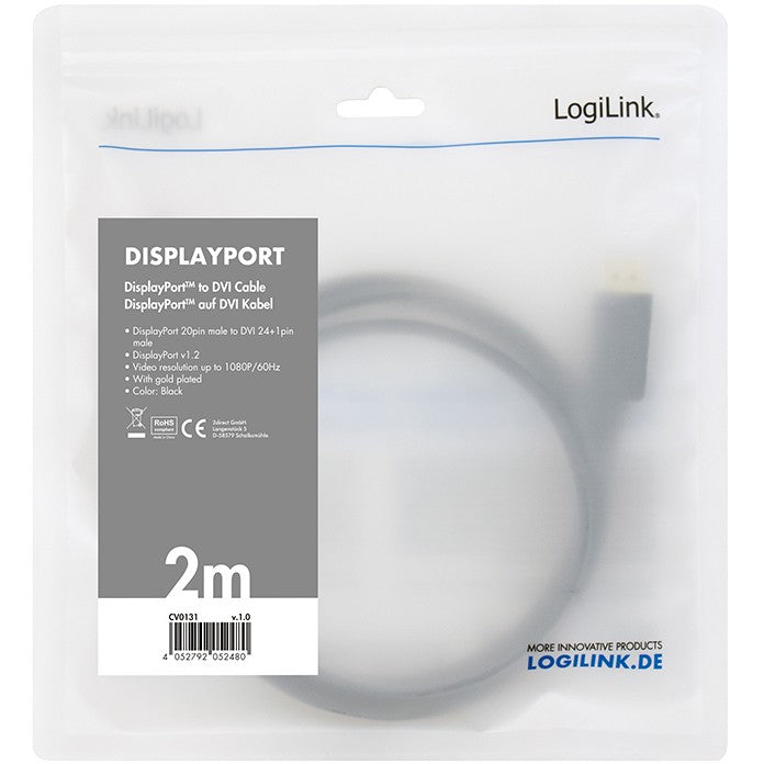 Logilink DisplayPort-Kabel DP 1.2 zu DVI 1.2 3.0m schwarz