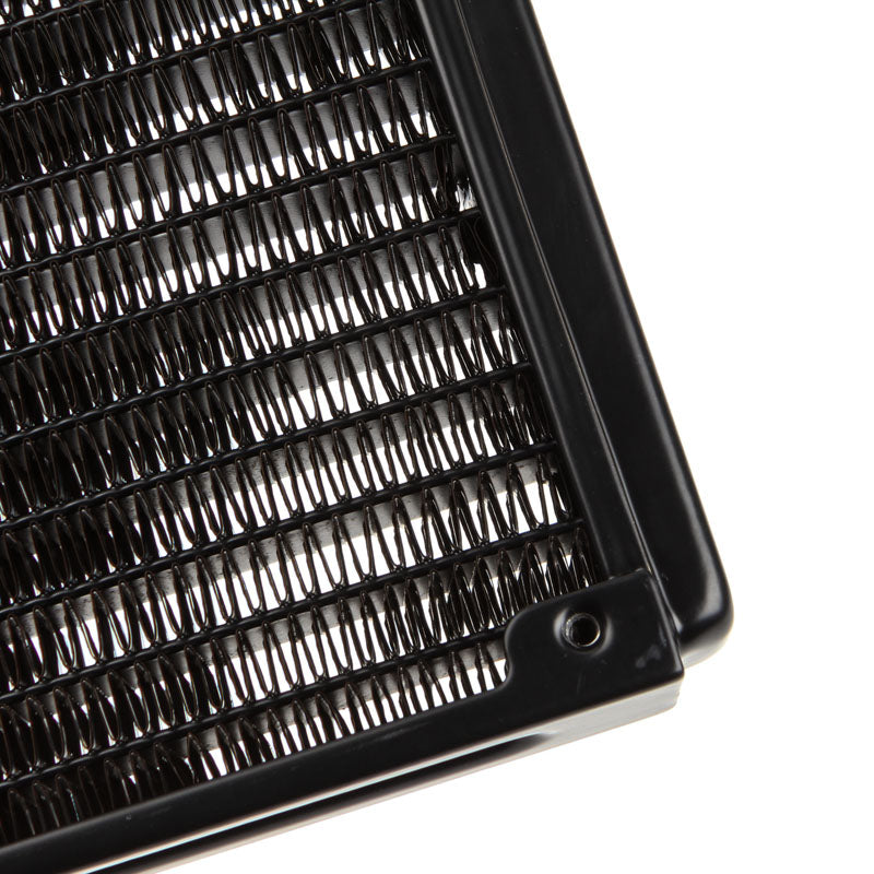 Mit der Fähigkeit, beidseitig einen 120-mm-Silent-Lüfter zu montieren, sorgt dieser Radiator für eine effiziente Wärmeabfuhr, während der Dual-Pass-Design die Kühlleistung maximiert. Die 16 FPI (Fins Per Inch) garantieren eine hervorragende Luftdurchlässigkeit und eine schnelle Ableitung von Wärme, selbst unter höchsten Belastungen.