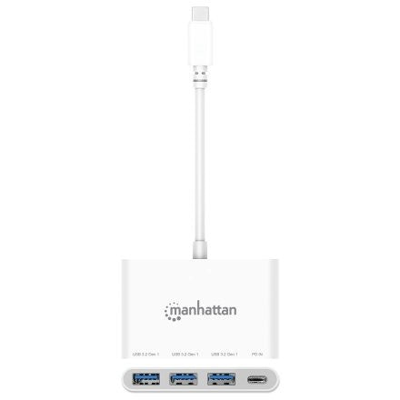 MANHATTAN 3-Port USB 3.0 Typ-C Hub mit PD Port 3x USB-A weiß