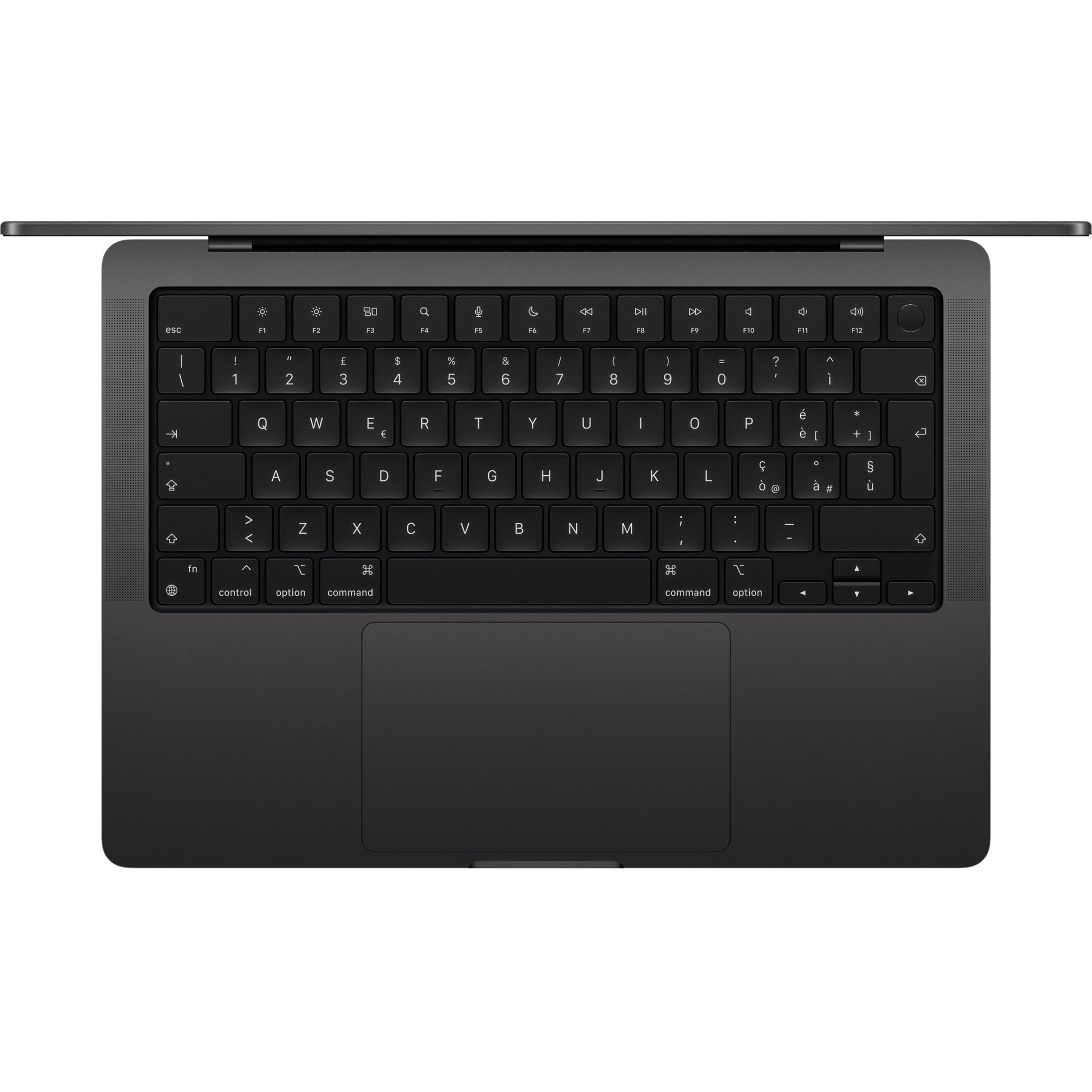 Apple MacBook Pro . Produkttyp: Laptop. Formfaktor: Klappgehäuse. Prozessorfamilie: Apple M. Prozessor: M4 Pro. Bildschirmdiagonale: 36.1 cm (14.2"). Display-Auflösung: 3024 x 1964 Pixel. Speicherkapazität: 24 GB. Gesamtspeicherkapazität: 2 TB. Speichermedien: SSD. Eingebautes Grafikkartenmodell: Apple GPU. Installiertes Betriebssystem: macOS Sequoia. Produktfarbe: Schwarz. Gewicht: 1.6 kg