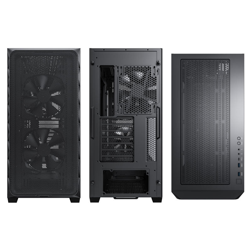 Midi-Tower-Gehäuse, mit Seitenteil aus Tempered Glass, perforierter Deckel und besonders luftdurchlässige Front, drei integrierte 140-mm-PWM-Lüfter