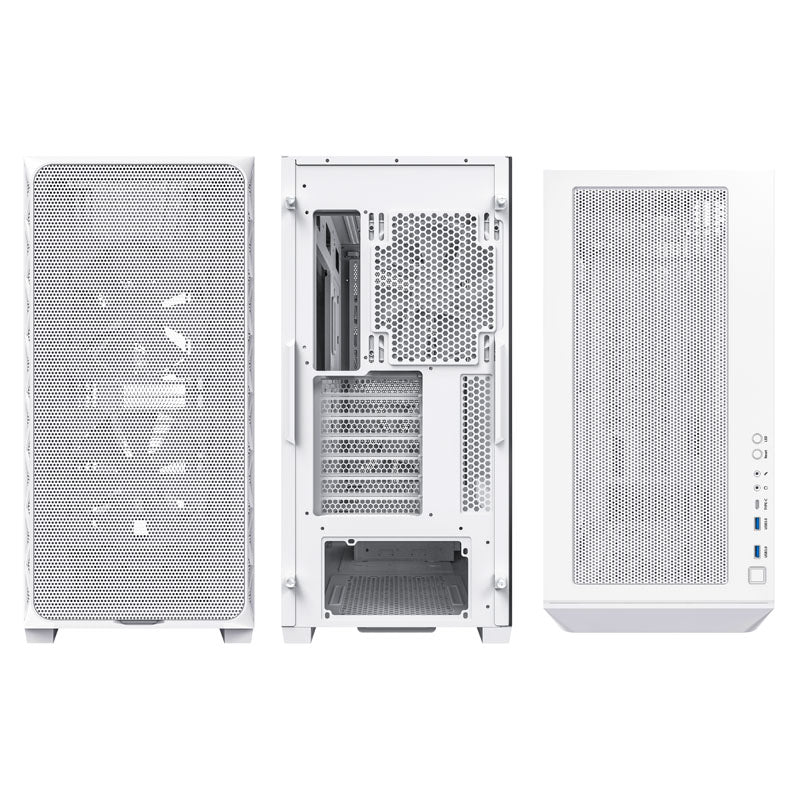 Midi-Tower-Gehäuse, mit Seitenteil aus Tempered Glass, perforierter Deckel und besonders luftdurchlässige Front, drei integrierte 140-mm-PWM-Lüfter