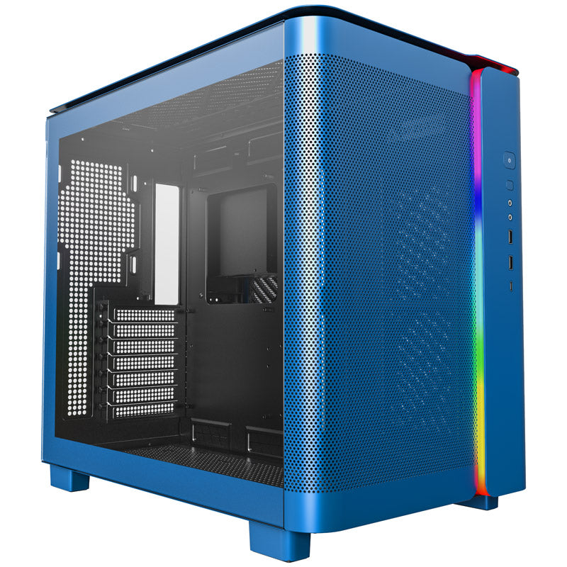 Gut ausgestatteter Midi-Tower, Vorderseite und Seitenteil aus Tempered Glass, linkes Seitenteil und Deckel mit Lüftungsschlitzen, Platz für bis zu 9x 120er- oder 6x 140er-Lüfter, GPU-Länge von bis 420 mm, ARGB-Strip an der Front, bis zu zwei Netzteile möglich