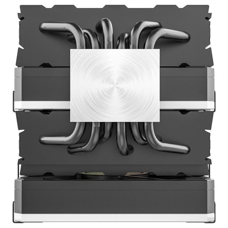 Der Kühler ist mit zwei 120-mm-PWM-Lüftern ausgestattet, die Drehzahlen von 800 bis 1.950 U/min erreichen können. So sorgt er für eine effiziente Luftzirkulation und hält die Temperaturen Ihrer CPU auch bei intensiven Anwendungen niedrig. Sechs Kupfer-Heatpipes gewährleisten eine schnelle und effektive Wärmeableitung und ermöglichen es dem Kühler, eine maximale TDP von 270 W zu erreichen.