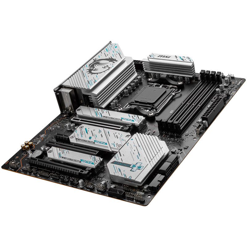 ATX-Mainboard mit X670E-Chipsatz, mit AMD-Sockel AM5, PCIe 5.0 für Grafikkarten, geeignet für DDR5-RAM, 1x M.2-PCIe-5.0 und 3x M.2-PCIe-4.0-Slots, 2,5 Gbit-LAN