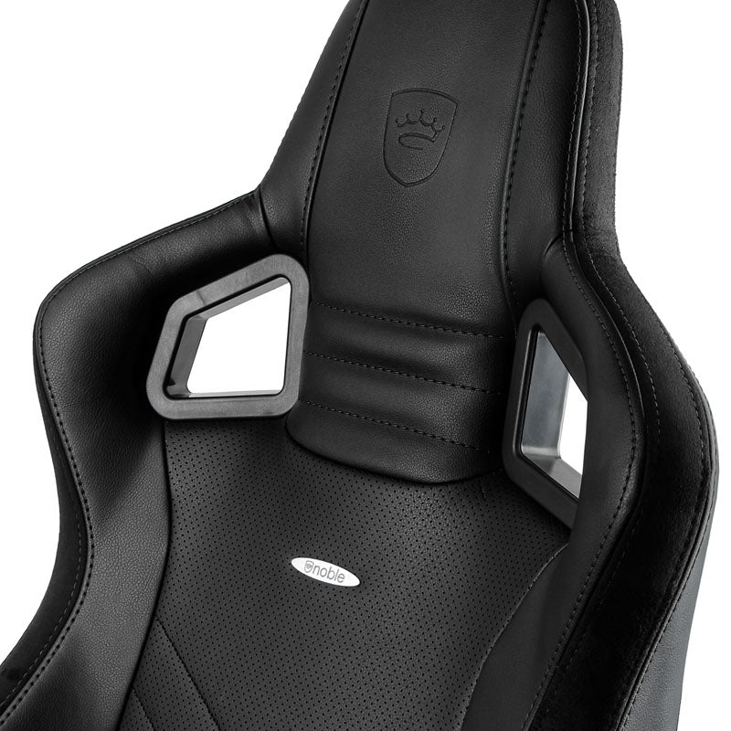 Atmungsaktiver Gaming-Sessel von noblechairs in Schwarz mit schwarzen Nähten, 60-mm-Rollen, 4D-Armlehnen, Komplettpolsterung & Bezug aus 2 Arten von veganem PU-Kunstleder