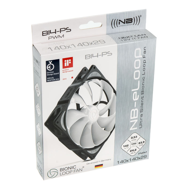 Entdecken Sie den Noiseblocker NB-eLoop Fan B14-PS, den ultimativen 140 mm PWM-Lüfter, der leistungsstarke Kühlung mit einer beeindruckenden Geräuschreduzierung kombiniert. Dieser ultra-leise Hochtechnologielüfter von Noiseblocker nutzt bionisch optimierte Rotorblätter, die nicht nur dafür sorgen, dass die Luft effizient bewegt wird, sondern auch die Geräuschentwicklung auf ein Minimum reduzieren.