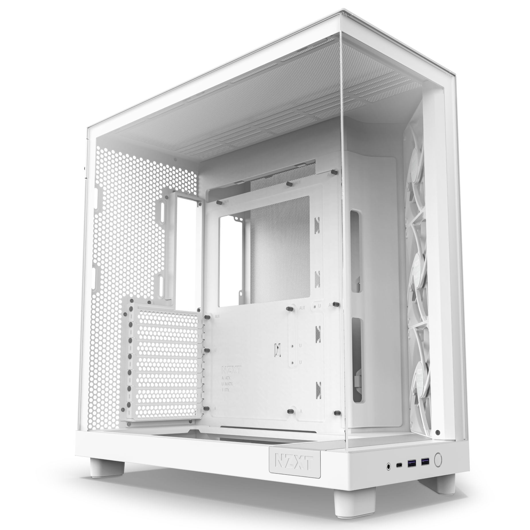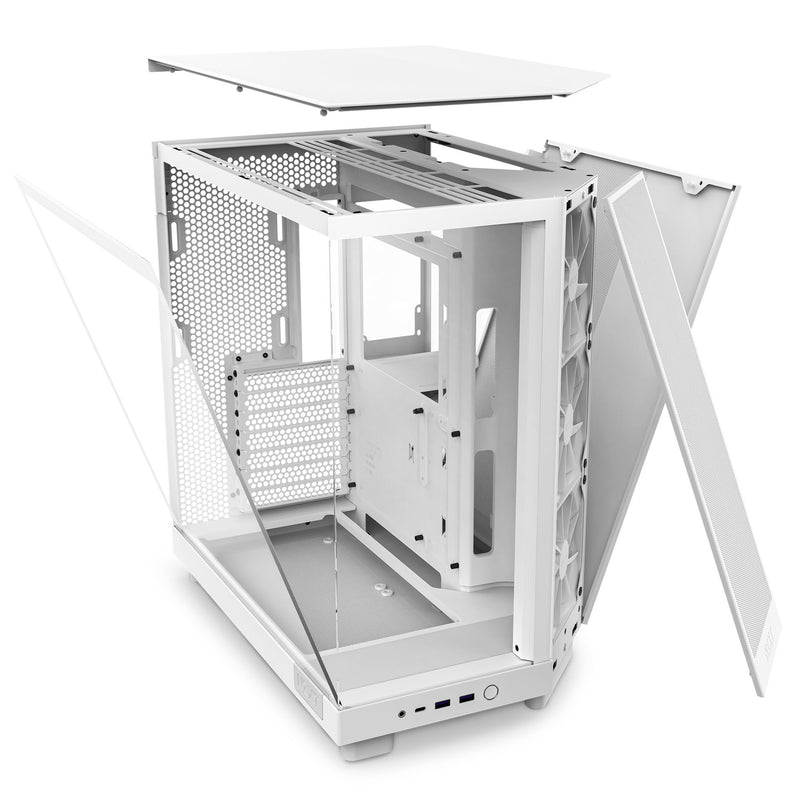 Mid-Tower von NZXT in Weiß, Front- und rechte Seite umlaufendes Tempered Glass, Bis zu 9 Lüfter installierbar, 2x USB 3.2 Typ A / 1x USB 3.2 Typ C