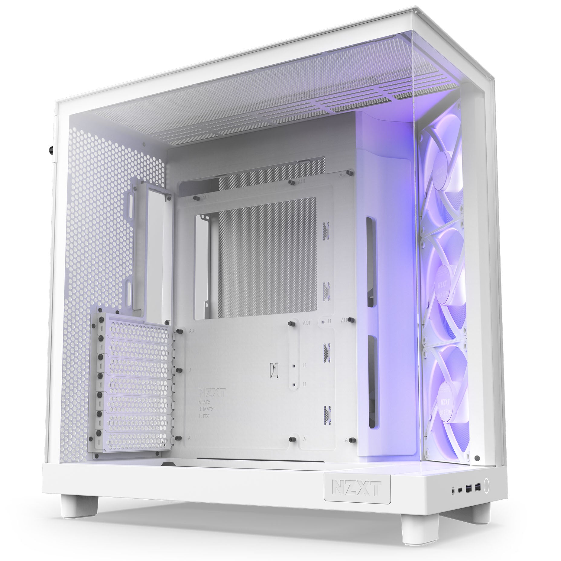 RGB Mid-Tower von NZXT in Weiß, Front- und rechte Seite umlaufendes Tempered Glass, Bis zu 9 Lüfter installierbar, 2x USB 3.2 Typ A / 1x USB 3.2 Typ C